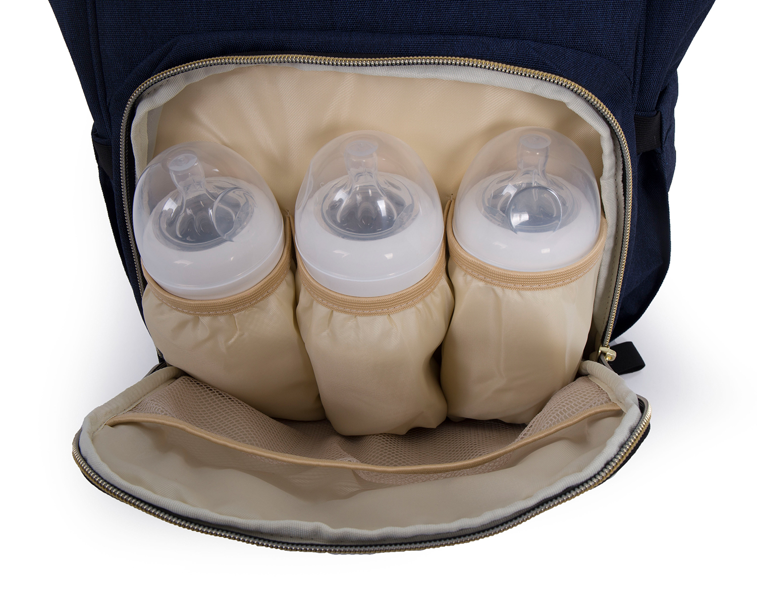 • Tela melange lujosa;• Incluye cambiador;• Clips para una fácil fijación en el manillar del carrito;• Bolsillo principal con una apertura amplia para un acceso fácil;• Bolsillos con organizadores para pañales y ropa;• Bolsillo resistente al agua para artículos mojados;• 3 departamentos de botellas que mantienen la temperatura del agua y la leche durante horas;• Abertura con cremallera en la parte posterior para acceder a la parte inferior del bolsillo principal;• Correa elástica y larga para ajustarla al carrito;• Adecuado como bolso y mochila;• 100% poliéster. Dimensiones:- Producto: 21x27x42 cm / 0.8 kg- Caja: 34x47x48 cm / 9.2 kg / 10 uds/caja