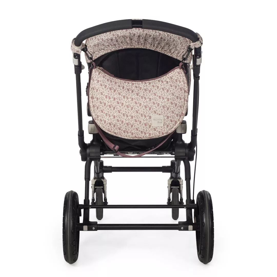 Su diseño curvado tipo góndola, es perfecto para llevar como bolsa bandolera. Con un precioso estampado floral en tonos cerise, aporta un toque moderno ideal para llevar tanto colgada al hombro como sujeta al carrito del bebé.