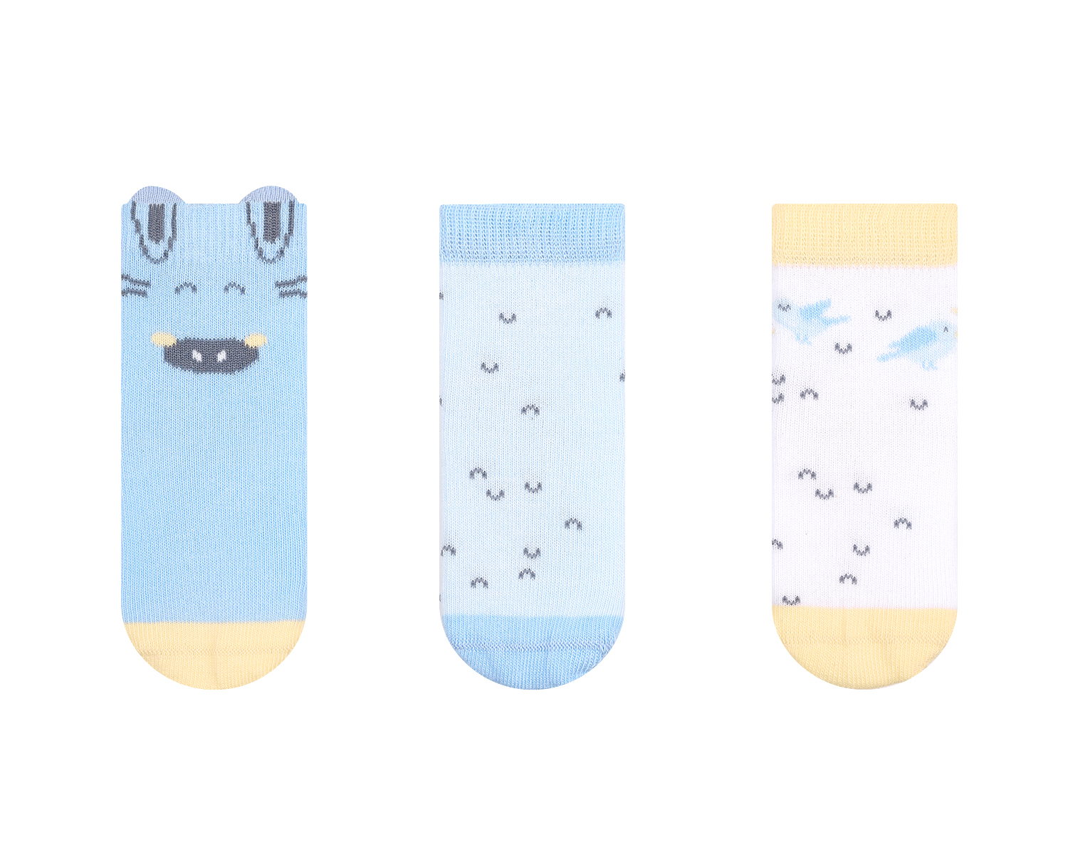 • Juego de 3 pares de calcetines suaves para bebés con un diseño elegante en colores suaves;• Juguetones detalles en las orejas en 3D;• Material transpirable y elástico de primera calidad;• Contenido: 85% algodón, 10% poliamida, 5% elastano;• Fabricados en la UE. Â