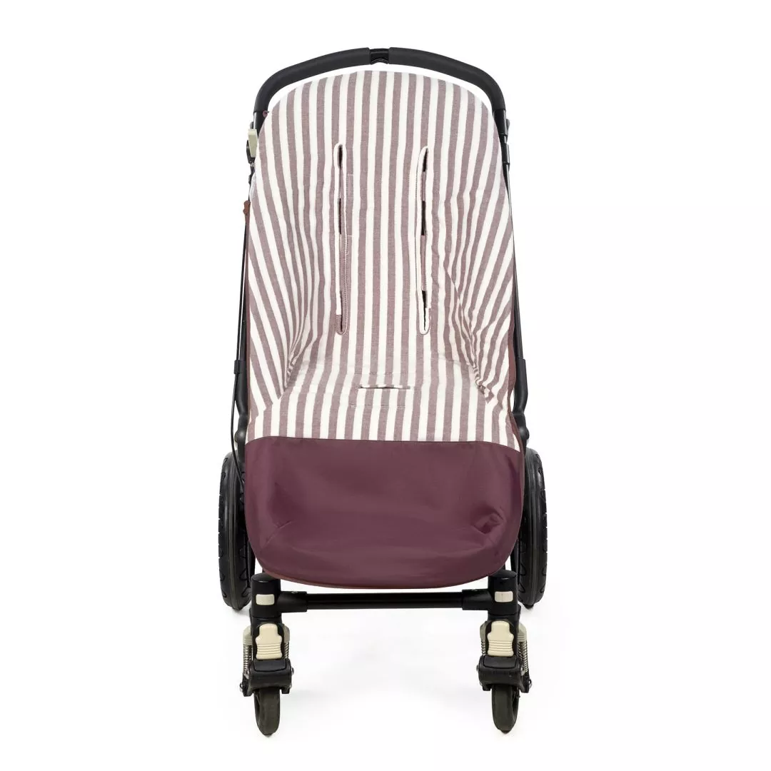 Diseñado para adaptarse a la mayoría de las sillas de paseo, este saco combina la belleza de su diseño con la funcionalidad y calidez que tu pequeño/a necesita. Diseño exclusivo «Cherry»: la solapa superior del saco luce el delicado y dulce tejido de rayas, añadiendo un toque de frescura y estilo al paseo de tu bebé. Interior de tejido de rayas e exterior de terciopelo con tratamiento waterproof: la parte exterior combina el tejido de rayas en la solapa con un suave terciopelo acolchado en tono burdeos en el resto del saco, ambos con un tratamiento waterproof.