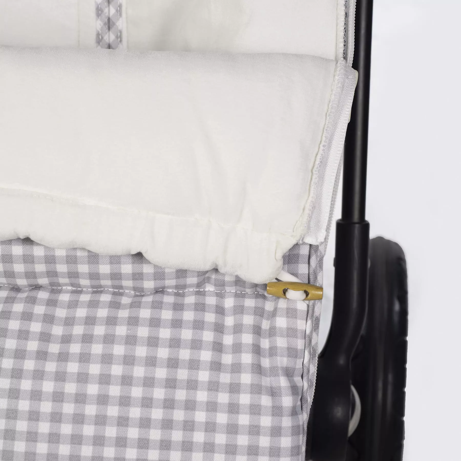 Saco de Silla Invierno I Love Vichy gris de Bebe Walking Mum , complementa perfectamente con casi todos los modelos de carritos de bebe, para llevar a tu bebe calentito durante el invierno en sus paseos por la calle.